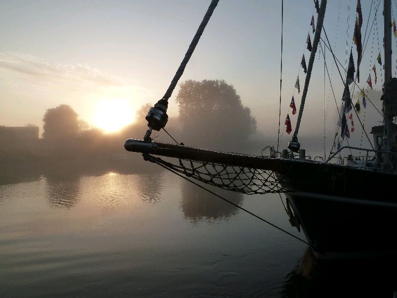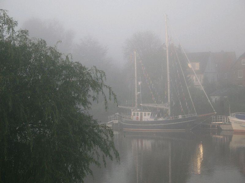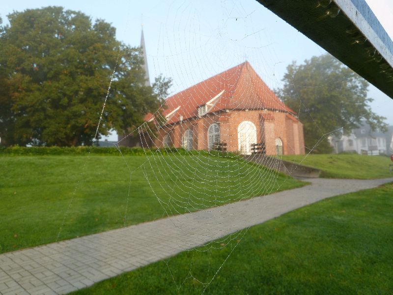 Oberndorf. Wer das Buch von Janosch kennt, weiß, was gemeint ist. Da segelt man (und Frau) um die halbe Welt um festzustellen, dass es zu Hause am Schönsten ist. Heute Morgen, absolute Stille, es wird Herbst, leichter Nebel bei Sonnenaufgang. Mein Vater nannte das ‘kleine Welt’. Wir liegen vor der Kirche. Es ist wunderschön hier. Sea u Bert