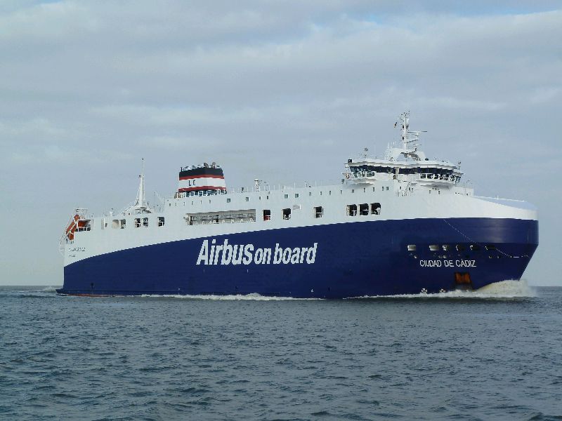 Tiefflieger auf der Elbe. Dieser Dampfer bringt die grossen Teile für den Airbus 380 nach Hamburg. Sea u Bert Bert October 3, 2011