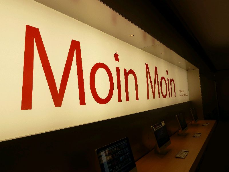 Hamburg. Einen riesigen Apple Shop gibt es jetzt am Jungfernstieg. Eine gigantische Glastreppe, wirklich ganz aus Glas, führt in den oberen Stock. Die Interessenten sind älter als wir dachten. Ein riesiges Moin Moin signalisiert die Internationalität. Nein wir haben kein I-Phone. Sea u Bert