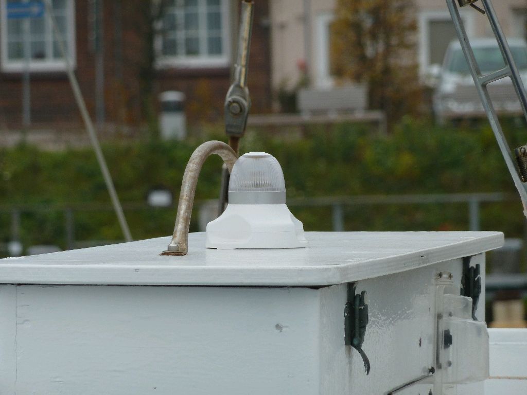 Eine Ankerlampe auf dem Ruderhaus. Gelernt haben wir das in Norwegen, da hatten wir auf einer Wasser-Kreuzung geankert. Es war knapp am schweren Unfall vorbei, als nachts ein schnelles Boot die in 16 Metern Höhe brennende Ankerlampe nicht sah. Auch auf großen Ankerplätzen wie in Martinique oder Bequia ist es nicht einfach, das eigene Boot wiederzufinden (da lagen so um die 300 Schiffe in der Bucht), denn die Ankerlampen auf den Masttoppen schweben über den Yachten wie ein Schwarm Glühwürmchen. Wir sind dort nachts auf dem Rückweg vom französischen Rotwein im Beiboot nach Kompass gefahren. Sea u Bert