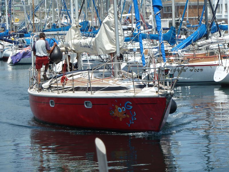 Kapstadt. Das ist Laura Dekker. Sie ist 16 und segelt allein um die Welt. Die Momos haben sie kennengelernt. Ein tolles Mädchen, und Brigitte nd Uwe haben nicht die geringsten Zweifel daran, dass sie es schaffen wird. Wir glauben, das die die sich darüber aufgeregt haben sie nicht kennen. Hier in Kapstadt wird sie das Unterwasserschiff malen und dann geht’s weiter. Sea u Bert