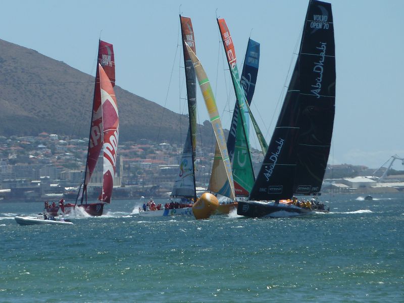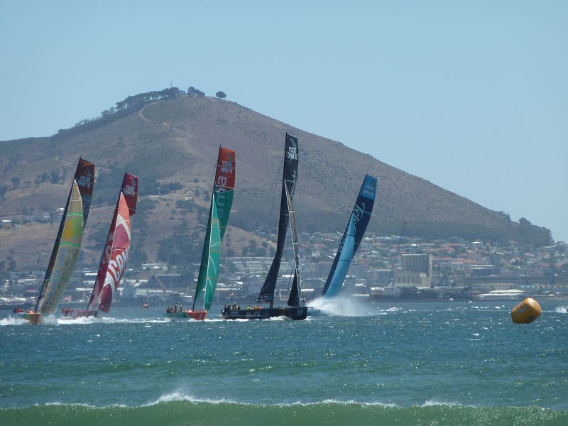 Kapstadt. Schon vor vielen Jahren waren wir hier, als die Yachten des Volvo Ocean Race einliefen. Leni und Julia hatten der siegreichen ‘Illbruck’ damals, Ende 2001, die Leinen abgenommen. Sekunden später war die flotte Marlene auch schon an Deck und brachte die Unterschriften der gesamten Crew inklusive der von Mike Illbruck mit.—-Jetzt sind wir wieder hier, waren beim ersten PRO-AM RACE am Strand, nur 300 m von der Wendeboje entfernt. Und natürlich werden wir beim Start dabei sein. Fünf Yachten waren heute im Rennen, mit für uns unvorstellbaren Geschwindigkeiten. Die sechste, das Boot des Puma-Teams, hatte ihren 32,5 m langen Mast verloren (Foto) und war mit einem Frachter hierhergekommen. Innerhalb von drei Tagen wurde das Boot instandgesetzt, und wir haben sie heute bereits außer Konkurrenz Probeschläge machen sehen. Die teilnehmenden Boote sind 21 m lang, 5,7 m breit und verdrängen 14,5 Tonnen (Heimkehr ist 18 m lang und wiegt 42 Tonnen und ist deswegen wohl auch einen Hauch langsamer). In Führung liegt bisher das Team Telefonica. Morgen mehr. Alle Fotos von Marlene. Sea u Bert