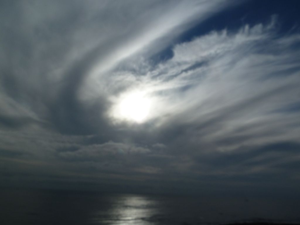 Wetterwarnung in Südafrika. Kapstadt. Bleierne See, Skispitzenwolken (frei nach Momo) und ein Halo um die Sonne sind Zeichen für aufziehendes Schlechtwetter. Nicht nur in Südafrika. Sea u Bert Bert December 13, 2011