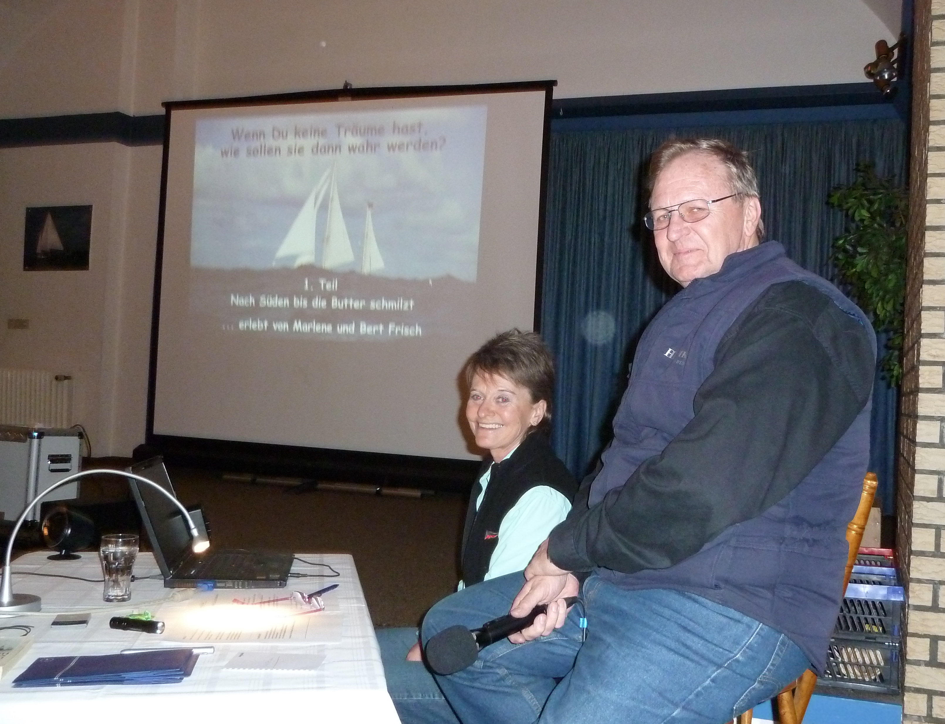 Freiburg/Elbe. Gestern haben wir den 1. Teil unserer Reise in Freiburg bei der Segler Vereinigung vorgetragen. Der Saal war voll, die Würstchen lecker (das Bier auch) und viele Freunde aus nah und fern waren da. Es hat uns sehr viel Spaß gemacht, die Bilder vom Beginn unseres Lebenstraums in 2009 noch mal in groß zu sehen. Das weckt Erinnerungen und hoffentlich bei den Gästen Fernweh und Vorfreude auf die bevorstehende Segelsaison. Sea u Marlene und Bert