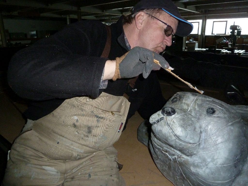 Unter fachkundiger Aufsicht der Yachtwerft Glückstadt haben wir am Wochenende dem Oberndorfer Seehund die Risse zugespachtelt. Der Freund der Oberndorfer Kinder hat arg unter der Witterung gelitten, große Risse hatten sich gebildet, der arme Kerl drohte sogar auseinanderzubrechen. Nach dieser Verjüngungskur soll er bald wieder seinen Platz am Anleger der Oste-Touristik in Oberndorf einnehmen. Der Meister in der Werft hat uns gefragt, wie der Seehund heißt. Da wussten wir keine Antwort. Hat er keinen Namen, dann muss Oberndorf aber schnell einen finden! Sea u Bert