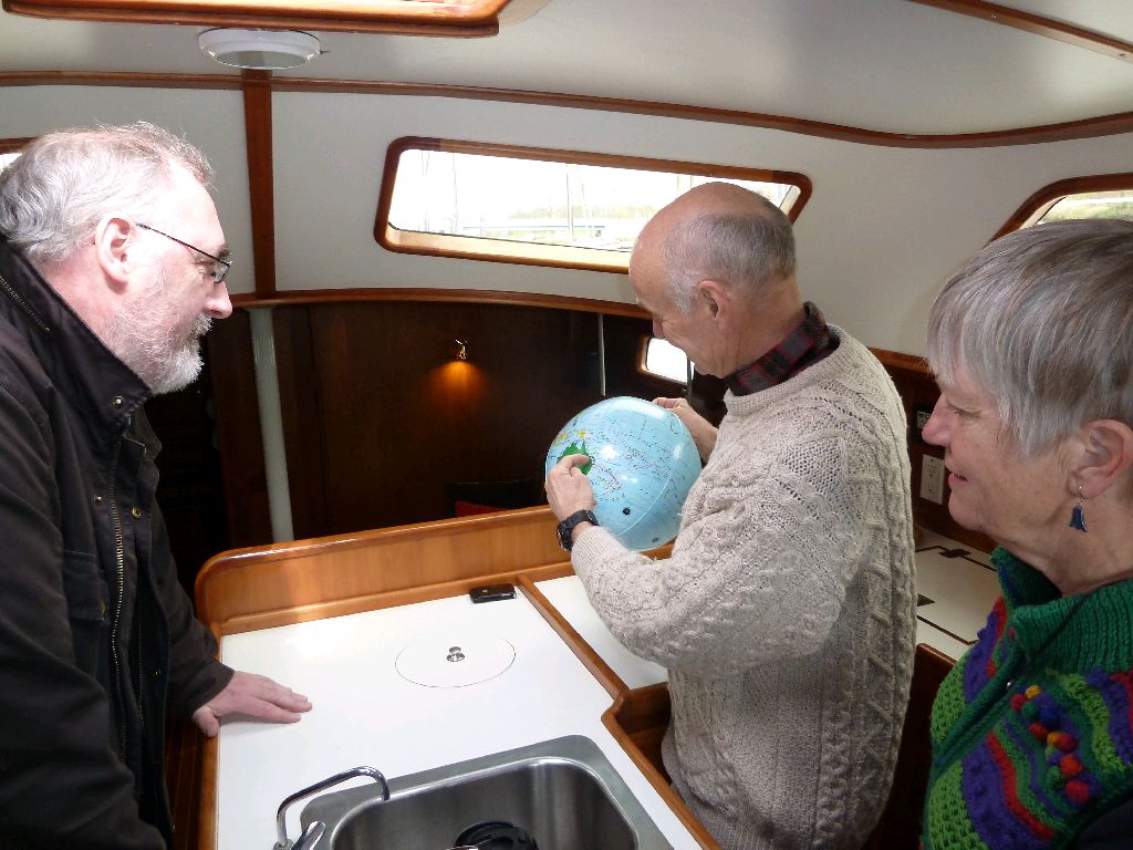 Oberndorf. Wir haben nebeneinander geankert, in Bermuda. Das ist ziemlich genau ein Jahr her. Natürlich haben wir von Oberndorf geschwärmt, wie wir das immer tun. Nun sind die beiden hier, Mary Anne und Larry, nachdem sie in London überwintert haben. Sie sind auf dem Weg nach Spitzbergen, und außer in Tromsö wollen sie nirgendwo festmachen. Das ist typisch für ihre Art zu segeln. So sind sie, die Pianistin mit Klavier an Bord und er, der ex Airline Pilot, auch nonstop von Seattle nach Neuseeland und ebenso von Neuseeland nach Chile gesegelt. Patagonien ist eines ihrer liebsten Segelreviere. Ihr letzter Wohnort Edmonton in Kanada liegt übrigens auf dem gleichen Breitengrad wie Oberndorf. Klar, dass wir im Oberndorfer Restaurant ’35° Nord’ gegessen haben. Spargel mit Schnitzel und Bratkartoffeln. Lecker. Sea u Bert Traversays Website: www.traversayiii.blogspot.de