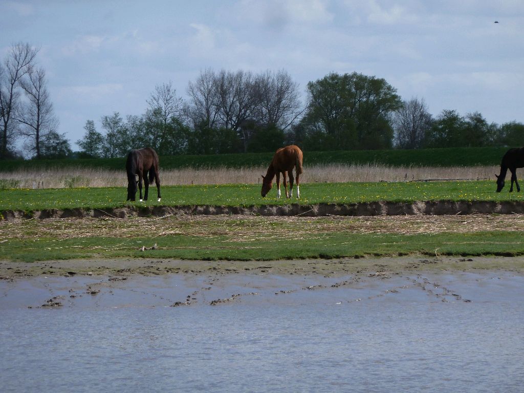 Oberndorf. An einem SamtundSeide-Tag, wenn auch kühl, sind wir heute in die Oste eingelaufen. Alles da: Seehund Mutter und Kind auf dem Osteriff, Pferde, Schafe, Kühe und gelbe Blumen. Immer wieder ein besonderes Erlebnis, die Oste raufzufahren. Wieso eigentlich wegfahren? Wie sagt Janosch? Oh wie schön ist Panama! Sea u Bert