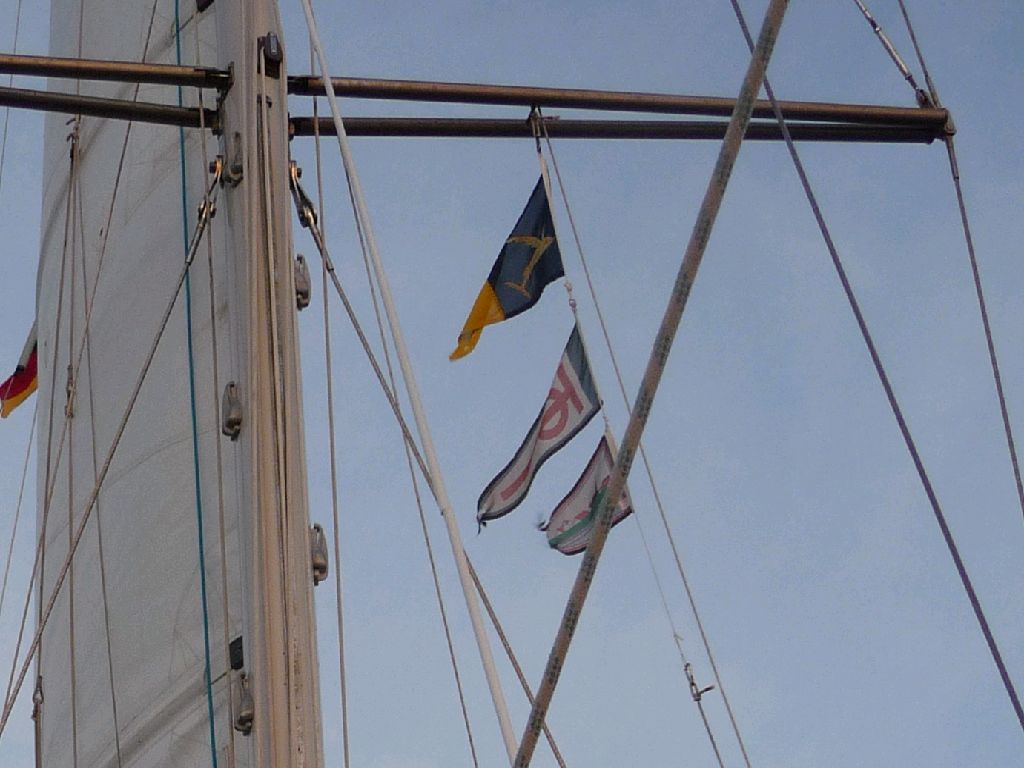 Mitgliedschaft bei TO und OCC. Der Jahresbeitrag bei TO (Trans Ocean) ist gerade mal 30 €. Dafür bekommt man und Frau eine Menge. Die Zeitschrift, die Website und Kontakte. Überall auf der Welt Stützpunkte, die einem helfen können, Ersatzteilpakete empfangen und in Notlagen aller Art helfen. Auf unserer Reise haben wir einige kennengelernt. Die erste Brille, die vor Portugal über Bord ging, hat meine Tochter, praktischerweise Optikerin, schnell ersetzt und an den Stützpunkt in Porto geschickt. Zack fertig. Der TO-Stützpunktleiter in Porto Santo ist nicht nur ex Pilot, sondern auch Elektronik-Experte. Er hat gleich mal unsere Funkantennen gecheckt. Am Ankerplatz dann sieht man die TO-Stander und trifft sich sogleich. TO verbindet. Eine tolle Sache. _____/)___ Der englische Club heißt OCC, Ocean Cruising Club. Der funktioniert ganz ähnlich, nur dass man 1000 Meilen in einem Stück gesegelt sein muss, um aufgenommen zu werden, und man braucht jemanden, der einen vorschlägt. Der OCC-Stander zeigt einen fliegenden Fisch, und auch der verbindet und gibt immer sofort Kontakt. Das ist wichtig, fanden wir. Die Freundschaften weit weg von zu Hause geschlossen halten lange. Sea u Bert