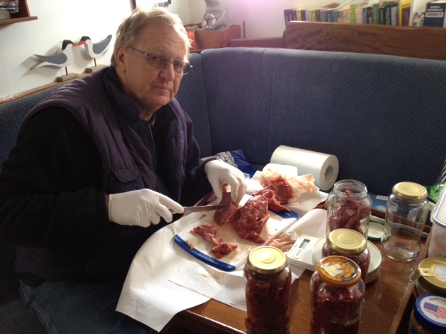 Helgoland. Einkochen. Kennt keiner mehr. Braucht nur einmal Energie, hält jahrelang und kommt ohne Chemie aus. Ich koche schon jahrelang Fleisch ein . Das gibt’ s auf Helgoland günstig in Topqualitaet bei Engel. 500gr einwiegen in ein Gurkenglas dann 25 Minuten in den Schnellkochtopf. Punkt. Eine tolle Sache. Siehe auch Punkt 34, ‘Was sich unterwegs bewährt hat’.. Sea u Bert