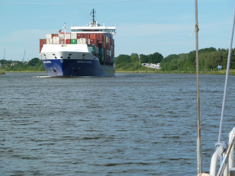 Rendsburg. Einfahrt in den Nord-Ostsee-Kanal: breit, viele große Schiffe, hohe Brücken. Eilige Yachten überholen rechts, alles etwas hektisch hier. Sind wir gar nicht mehr gewohnt nach der einsamen, ruhigen Eider. Im Regatta-Verein Rendsburg finden wir einen Liegeplatz und freuen uns über die hilfsbereite, fröhliche Hafenmeisterin. Lecker Salat gibt’s auch, die Sonne scheint. All’s well on board. Marlene