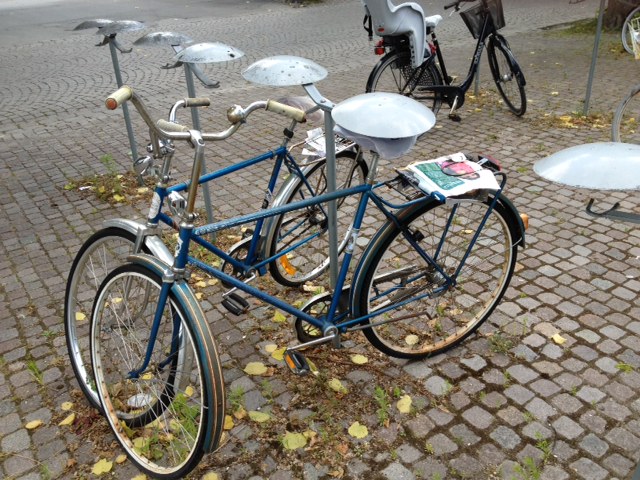 Alles Geniale ist einfach! Visby. Ein Fahrradständer mit einem kleinen Dach über dem Sattel. Unter dem Deckel ist so ein Haken in den man (oder Frau) den Sattel einhängt. Nie wieder nasser Hintern! Sea u Bert Bert July 13, 2012