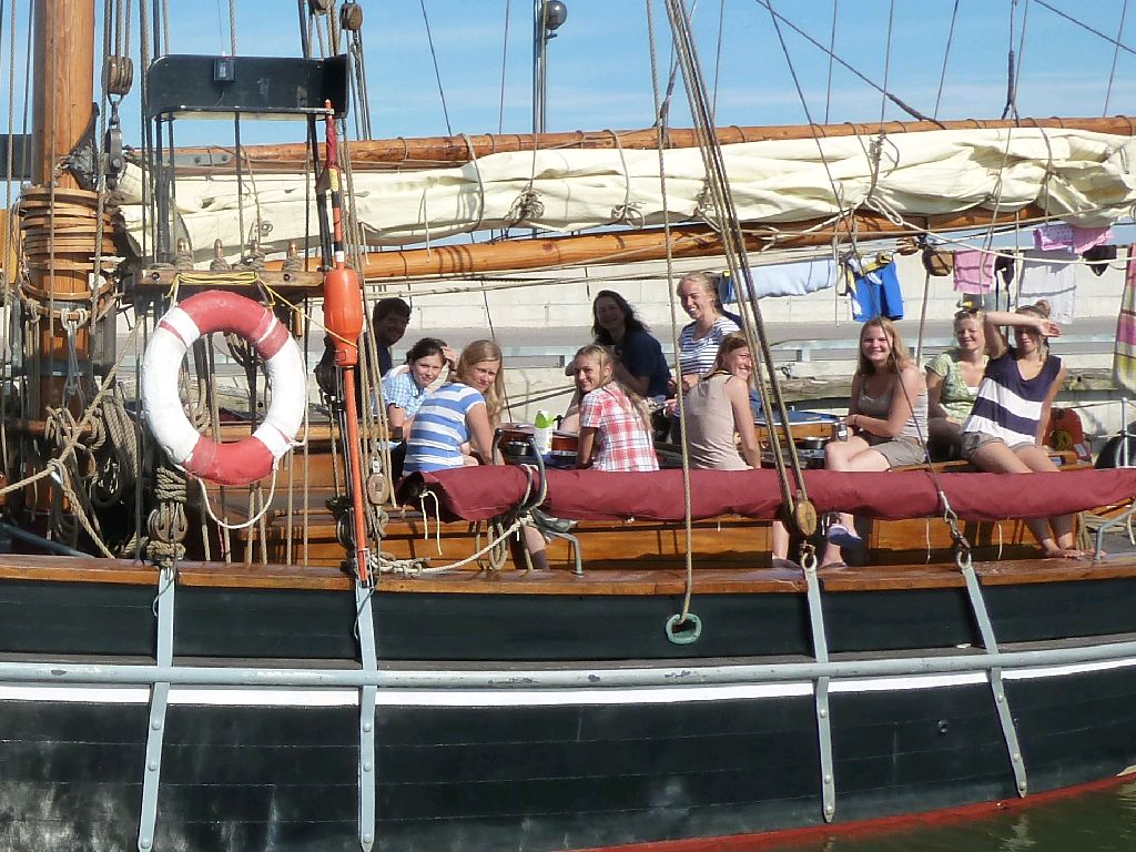 Dirhami. Eine quietschfröhliche Mädchenschaar lernten wir in Dirhami kennen. Auf dem umgebauten Krabbenkutter ‘Mytilus’ aus Hamburg schippert die 9-köpfige Gruppe (plus Stammbesatzung) in der Ostsee herum. Der Betreiberverein verchartert den schönen alten Gaffelkutter an Jugendgruppen, wie an diese ‘Wandervögel’. Es war bezaubernd, den Gesang der Mädchen zu hören. Schon morgens vor dem Frühstück. Sea U Bert