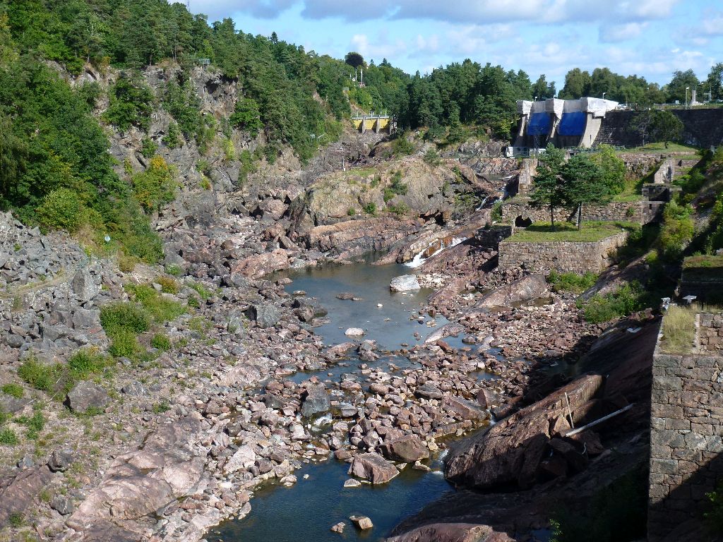 Trollhättan. So heisst ja nun unser Elektrizitätswerk in Hamburg. Weil die Firma Vattenfall es gekauft hat, so wie bei Monopoly. Diese Firma sitzt hier in Trollhättan und hat ihren Namen von dem großen, immerhin 32 m hohen Wasserfall, der den Überlauf des riesigen Vänernsees bildet. Hier hat man schon vor langer Zeit Tore vor den Wasserfall gebaut und das Wasser mit Hilfe von zahlreichen riesigen Turbinen zur Stromerzeugung genutzt. Damit haben die klugen Schweden viel Geld verdient und das Hamburger E-Werk gekauft. Im Sommer einmal täglich, jetzt im Winter (!?) einmal pro Woche, werden die Schleusen für eine Stunde geöffnet und das Wasser stürzt in seinem ursprünglichen Bett ins Tal. Dann fließen wieder wie früher ca. 900 Kubikmeter Wasser pro Sekunde den Berg hinunter. Für die Touristen. Sea U Bert