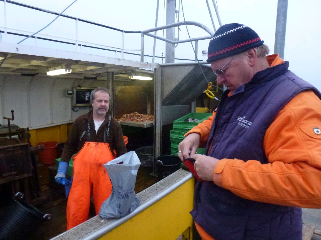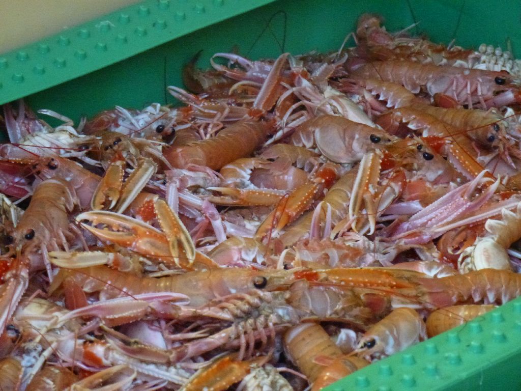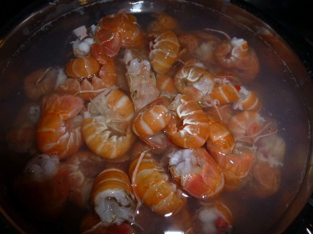 Laesö. Auch Kaisergranat genannt, oder in dänisch Jomfruhommer. Auf jedenfall lecker. Meine beste Freundin Mutz hat uns angetrieben: ‘die müsst ihr am Kutter kaufen”. Und Leni hat dann mich angetrieben, als der Kutter heute Morgen um sieben einlief. Ein guter Liter Schwänze (1,3 kg) für 50 Dkr ist Senation. Zum Frühstück mit etwas Mayo auf dänischen Brötchen, heute Abend in einer hellen Dillsoße. Die Biester werden nur nachts gefangen und sind vornehmlich auf dem Grunde des Kattegat anzutreffen. Sea U Bert