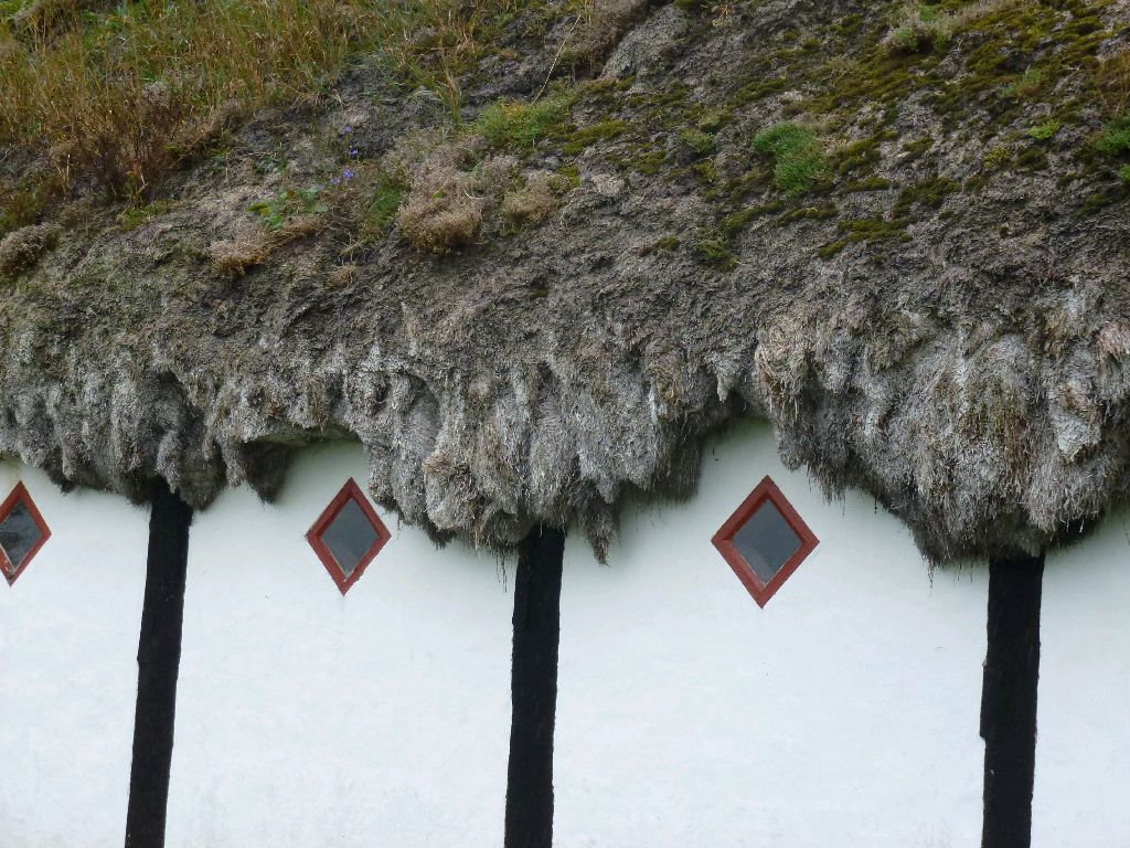 … ist die größte Insel im Kattegat, aber die kleinste Gemeinde in Dänemark (1918 Einwohner). Und soll die meisten Sonnenstunden haben. Heute nicht – es hat den ganzen Tag geregnet. Trotzdem haben wir uns die nach alter Laesö-Bauweise gebauten Tanghäuser angesehen. Erstaunlich, dass diese schwer aussehenden Dächer leicht sind und besonders gut isolieren.