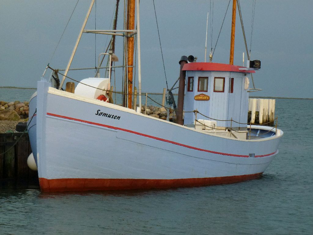 Hou. Die 25 Seemeilen von Ebeltoft nach Hou an der Ostküste von Jütland begannen erstmal mit ordentlich Regen beim Ablegen. Kurs nach Süden, Wind mit 15 Knoten aus Süd-Südost. Beide Maschinen laufen, dazu setzen wir das Großsegel und nehmen es ganz dicht. Der Himmel und die Ostsee verschwimmen in ein farbloses Grau mit kleinen weißen Tupfern in Form von Schaumkronen. Da ist die grüne Tonne echt ein Lichtblick. Hou ist ein kleiner Ort mit niedlichem Hafen (piekfeine Sanitäranlagen), kleinem Sandstrand, Fähranleger und einem bildhübschen Fischkutter (da kommt der Alte echt in Wallung). All’s well on board – Marlene.