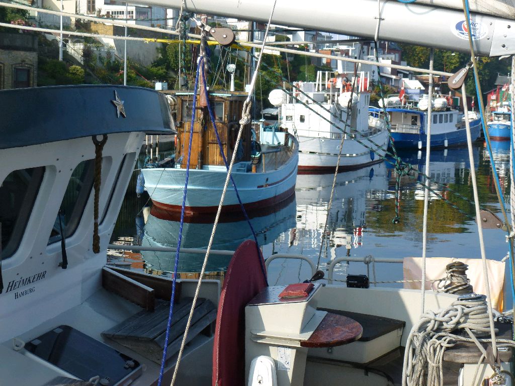 Herrlich, wenn morgens die Sonne scheint. So ganz sachte durch den Morgennebel. Ein gemütlicher Kutterhafen, genau richtig für die Dicke. Leider blieb die Sonne nur bis 11. Aber immerhin. Heute Abend liegen wir an unserem alten Liegeplatz in Rebaek, kurz vor Kolding. Hier haben wir viele Jahre lang gelegen. Unsere Mooring ist leider abgesoffen. Sea U Bert