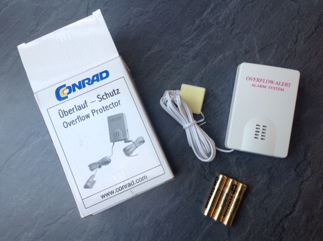 Wassermelder. Diese einfachen Wassermelder gibt’s bei Conrad. Die Dinger kosten so bei 10 Euro. Die Batterien halten bei uns über zwei Jahre. Wir haben sie in jeder Bilge und unter den Toiletten. Genau von dort kam einmal der Alarm. Eine hervorragende Versicherung gegen Überraschungen der unliebsamen Art.