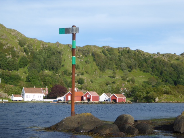 Die norwegischen Seezeichen Kirkehamn. Es ist ganz einfach, sie stehen auf dem Felsen und da wo der Arm hinzeigt kann man vorbeifahren. Manchmal gibt s auch rot und grün. Funktioniert prima. Sea U Bert Bert July 15, 2015
