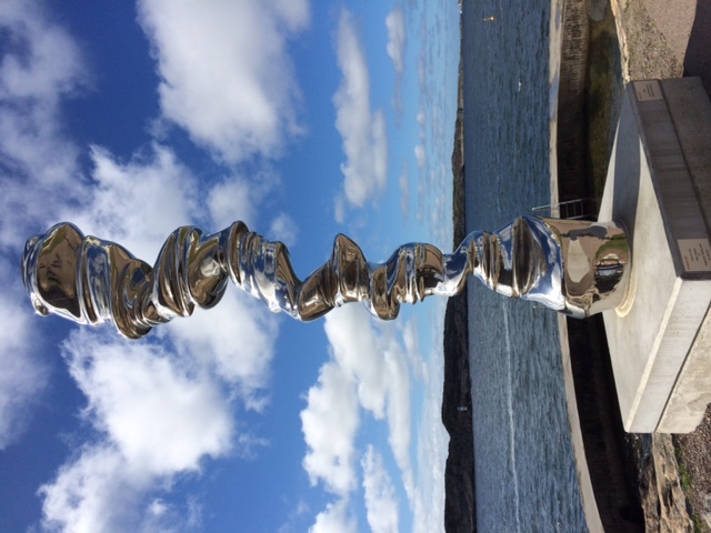 Kunst in Marstrand. Marlene sagt es ist die Kurbelwelle eines großen Schiffmotors. Ich sage, es ist der verchromte Inhalt eines Waldickdarms. Was meint ihr? Sea U Bert Bert August 12, 2015
