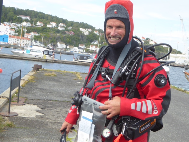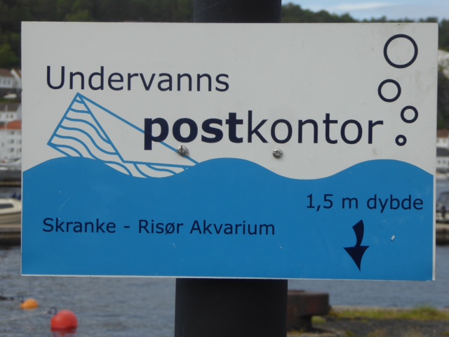 Risör. Wer die Postkarte in einen bestimmten Briefkasten hier in Risör steckt, bekommt sie im Unterwasserpostamt abgestempelt. Ein Postaucher bringt sie in eine Taucherglocke und abgestempelt zurück. Sea U Bert