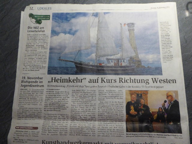 Oberndorf, gestern Abend hatten wir volles Haus. Etwa 100 Teilnehmer waren im historischen Saal bei Uschi versammelt. Eingeladen hatte die AG Osteland. Es gab eine Vorgeschichte, die ich erst heute gefunden habe. Mein Vater hatte als 17 jähriger eine Geschichte für ein Jugendbuch geschrieben, auch über die Scilly Inseln. Zwei Jungen sind mit ihrem Onkel auf dem Dampfer Augustus zu den Inseln gekommen. Und sind dort ein paar Tage herumgesegelt. Die hab ich heute Marlene vorgelesen. Sea U Bert