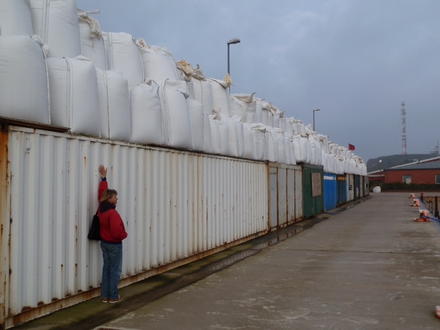 Helgoland. Hinter dieser sandgefüllten Schutzwand finden die Baggerarbeiten im Hafen statt. Gaaaanz vorsichtig, der Grund ist voller Blindgänger. Sea U Bert