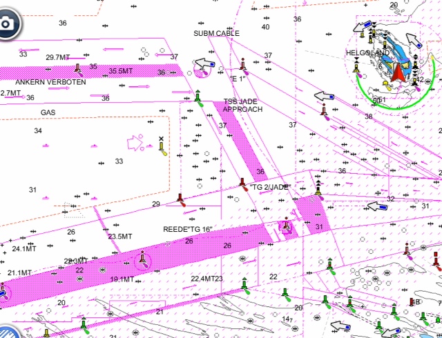 Da treiben die Behörden es etwas toll. Die Verkehrstrennungsgebiete werden sehr genau überwacht. Freunde sind durch den unteren Kreisverkehr bei TG Jade falsch gefahren und wurden aufgefordert so lange zu warten, bis ein Polizeiboot kommt. Es war 22.00 Uhr. Das Polizeiboot hatte gerade Dienstschluss in Cuxhaven und musste mit fast drei Stunden Anfahrt die “Täter” vernehmen, um dann wieder zurückzufahren. Dem Segler droht nun ein Bußgeld von 750 €. Zum Zeitpunkt der falschen Querung war auf dem Radar im Umkreis von 5 Meilen kein Schiff. Wir mussten von der grünen Tonne TSS Jade Approach nach Helgoland, dürfen die TSS nur rechtwinklig passieren. Nicht einfach. Die beiden Fahrstreifen vor Helgoland sind nur empfohlene Wege, da darf man. Sea U Bert