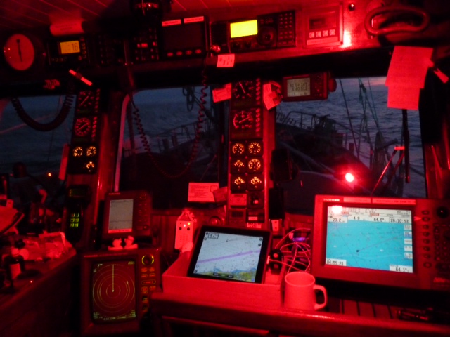 Nachts im Ruderhaus.