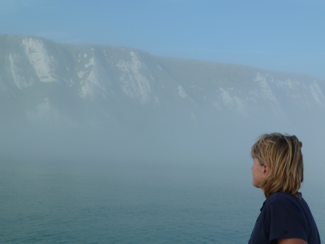 Eastbourne. Immer noch Ostwind, aber heute so wenig, dass wir gut gegenan dampfen können, nach Dover. Heute Morgen sind wir dann in dickstem Nebel in die Schleuse. “Ja, rechts neben Dir ist das Schleusentor”. Eastbourne mögen wir, haben uns eingelebt. Das zeigt sich an zwei Punkten besonders: Der Skipper von der Hafenrundfahrt erzählt immer eine lange Geschichte über die Heimkehr und das Hamburger Bier und zweitens, die charmante Chefin des Hafenbüros, eine Französin, hat mich in die Entscheidung für die Auswahl der neuen Dienstkleidung für die Büromädchen einbezogen. Da meinte Leni, dass wir nun wohl mal los müssen.