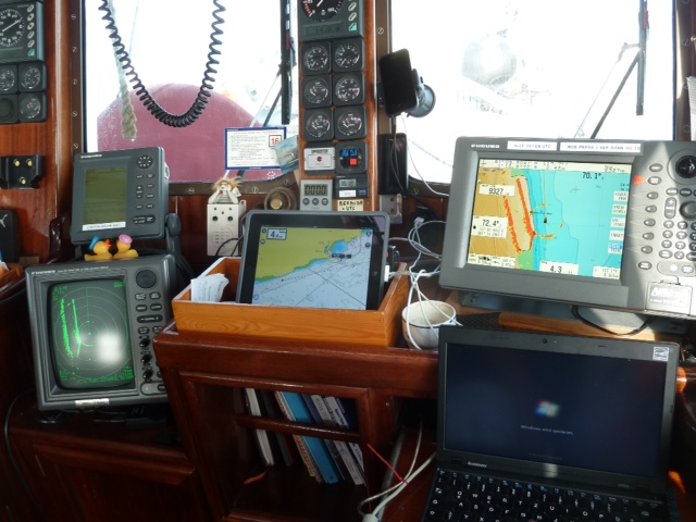 In See, 10 Meilen vor Dungeness Point. Wind: gegenan 3 Beaufort, Strom: Stauwasser (also nicht gegen uns, aber auch nicht mit uns), Sicht: 300 m ? (weiß nicht, seh ja nix). Der Nebel hat sich über uns gesenkt, wir tasten uns vorwärts Richtung Dover. Eine Maschine läuft, Großsegel fängt den leisesten Windhauch ein, Radar läuft. Schiffe, die AIS haben, sehe ich auf dem Kartenplotter. Wenn die Fischer und ihre allseits beliebten Netzbojen nicht währen, wär’s ganz gemütlich. Der ‘Alte’ hält ein Frühstücksschläfchen. All’s well on board, wenn auch etwas undurchsichtig – Marlene