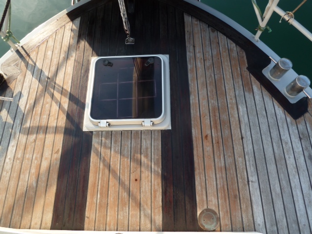 Wir tränken damit unser Deck damit, um es wasserundurchlässiger zu machen. Wir arbeiten uns stückweise vor, das behandelte Deck soll 3 Tage nicht belastet werden. Die Seitendecks haben wir fertig, jetzt sind wir am Poopdeck. Vorher schleifen wir die Decksplanken per Hand. Klingt hart, ist aber eine schöne Arbeit. Die Anstriche erfolgen dann alle 20 Minuten, nass in nass, und das 10 bis 15 mal. Sea U Bert