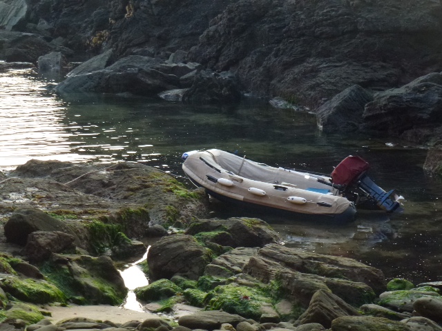 Das Beiboot ist bei den Weitwegseglern ein Arbeitspferd. Auch deren Schuhe. Unseres ist ein Pischel , das haben wir mindestens 12 Jahre. Es ist schwer, wiegt ohne Motor schon 140kg. Dazu kommt noch der 18 PS Aussenborder. Durch Form und Gewicht liegt es aber gut im Seegang, da haben wir schon einiges ausprobiert. Es hat eine faltbare Badeleiter ( gut für Taucher) und in der Backskiste ist viel nützliches verstaut. Nützlich, wenn s mal ernst wird. Schwimmwesten, Knallpengfeuerwerk, Kompass, Anker, 30m Leine dazu, Wasser, Riemen, Signalhorn, Taschenlampe und das was ich vergessen habe. Den Pyjama haben wir in Bequia machen lassen, die Tropensonne frisst alles. Wir können es auch während der Fahrt aussetzen, wie jetzt gerade bei Bishop Rock Lighthouse. Auch einer von uns kann das allein, in weniger als 2 Minuten. Das hat einmal einem Amerikaner bei New York das Leben gerettet. Auch haben ihm schwedische und nordamerikanische Felsen und karibische Korallen keine nennenswerten Schäden zugefügt. Altersgerecht hat es von Leni schon einige Flicken bekommen. Wir lieben unser Beiboot. Es heißt Blaufuchs. Danke Blaufuchs. Marlene und Bert.
