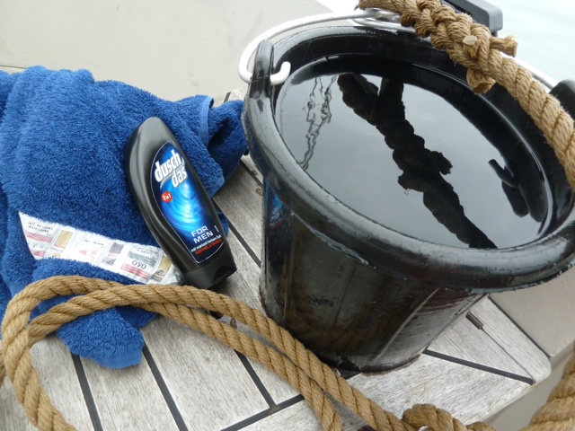 Nach durchsegelter Nacht hilft die sehr kühle Dusche.