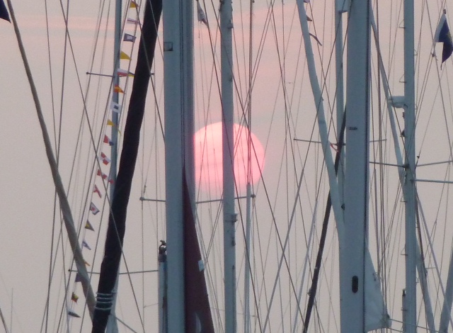 In See. Noch über 60 Meilen bis nach Needles, den westlichen Eingang zum Solent. Eine halbe Stunde nach Mitternacht ist es ja noch fast gestern Abend. Ich habe gerade angefangen ein Brot zu backen, das dauert in der Backmaschine 2,5 Stunden. Frisches Brot zum Frühstück auf See ist doch ein Wort oder? Mal sehen was Sie sagt wenn s nachher so gut riecht. Wir machen mit einer Maschine gegen wenig Wind 4,7 kn über Grund. Der Strom im Kanal ist doof. Kommt meistens von vorn. Der halbe Mond zieht eine Bahn über die See und es ist eigenartig warm draußen. Auf dem Radar im 6 Meilen Radius nur zwei Kontakte. Eine Yacht die uns sehr langsam überholt hat und ein vor Anker liegender Tanker. Es ist ruhig, es ist friedlich. Heimkehr weiß wo sie hinwill. Ich habe wenig zu tun, höre Musik und guck auf Radar und Plotter. Wir mögen diese Stimmung. Macht nichts, dass wir morgen müde sind. Sea U Bert .