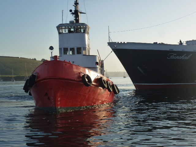 Um halb sieben heute Morgen kam dieser Schlepper zum Kuscheln, brachte einen Kreuzfahrer an die Pier. Wir gehen nachher weiter nach Fowey. Sea U Bert
