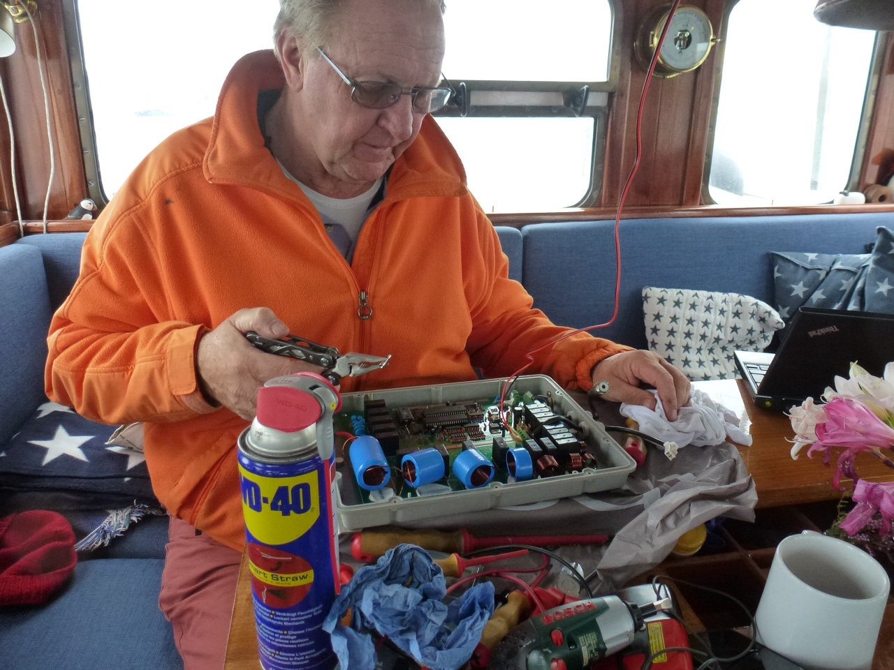 St. Mary’s. Das ist der Tuner unserer Kurzwellenfunkanlage. Der befindet sich, weil er dicht bei der Antenne sein soll in einer eigentlich Wasserdichten Kiste auf dem Ruderhausdach. Leider ist wohl doch Wasser eingedrungen. Trotz intensiver Beratung durch Jörg Yachtfunk haben wir es nicht wieder zum Laufen gekriegt. Schade, die Funkerei macht uns viel Spass. Sea U Bert