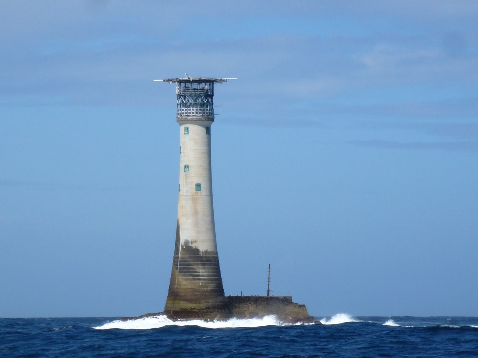 In See. Wolf Rock, der steht südwestlich von Landsend. Ganz ähnlich dem Bishop Rock , nur das dieser eine viel größere Insel hat. Beiboot aussetzen war heut nicht drin, wir hatten drei Meter See. Sea U Bert