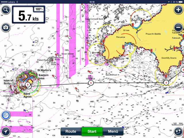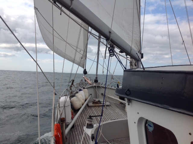 In See. Nach einer Woche in Falmouth haben wir endlich ein passendes Windfenster gefunden. Heute soll es Nordwest werden, unser Kurs zu den Scilly Inseln( man darf nicht Scillies sagen !?) ist ziemlich West. Als erstes werden wir Lizzard Point runden, wieder so ein Kap mit blöden Strömungen und Strom gegen Wind Überraschungen. Jedenfalls haben wir alles dicht rundherum und alle Steckschotten drin. Von da ab geht’s dann etwa 40 Meilen geradeaus. Wir lieben den Atlantik, hoffentlich er uns auch. Die Scilly Inseln sind wunderschön, ich bin mal dort gewesen. Aber es gibt keinen Hafen. Ankern, oder Moorings sind angesagt. Für unsere Gewichtsklasse gibt es nur 6 Bojen, alle in St. Marys Pool. Der ist aber nach Westen offen. Das Schiff muss also ständig unter Dampf, also immer klar zum Auslaufen, bleiben, Day and Night. Sea U Bert