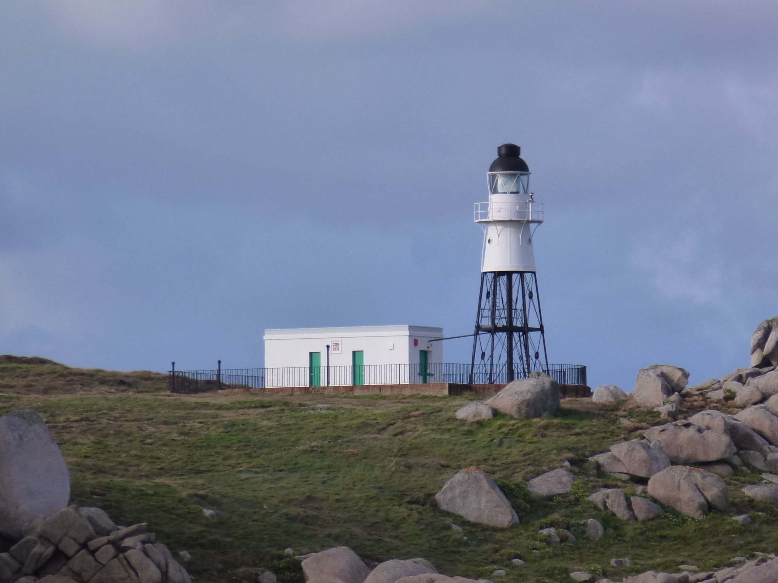 Isles of Scilly, St. Mary’s Pool. Nach 66 Seemeilen haben wir den “semi-tropical outpost”, wie das Handbuch die 56 Inseln nennt, erreicht. Fünf sind bewohnt. War kein Spaziergang, ziemlich viele Schlaglöcher im Atlantikwasser. Aber unsere Dicke steckt das locker weg. Alles well auf der Heimkehr – Marlene Foto: Peninnis Head Leuchtfeuer auf St. Mary’s