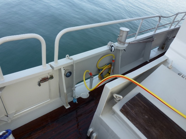 Dartmouth. Große Wassertanks sind schon prima, wenn man an Pontoons liegt. Hier gibt es einen Müll -und Wasserponton. Sea U Bert