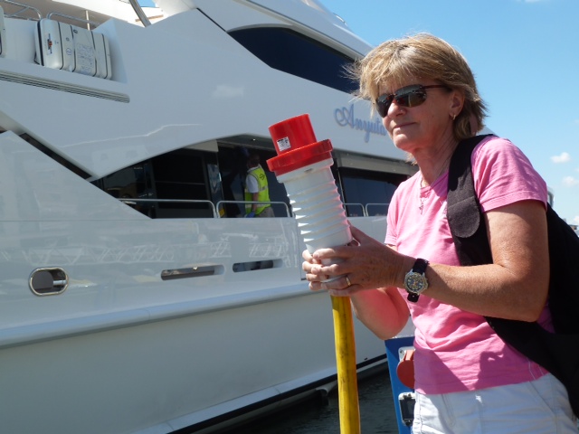 Poole. Zunächst dachten wir die Tanken. Nein, es ist das Landanschlusskabel. Allerdings ist das Boot unseres Nachbarn auch etwas größer. Sea U Bert