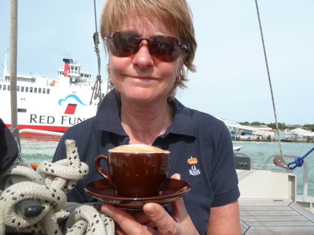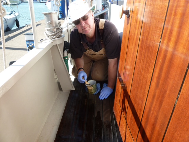 Cowes. Unser Camballadeck bekommt einen (genaugenommen 10) Anstrich mit Qwatrol. Das tut ihm gut glauben wir. Sea U Bert