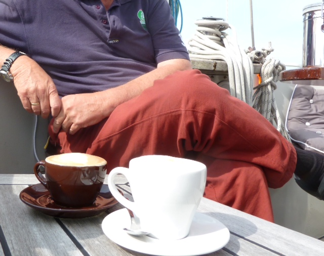 Cowes. Sie werden vielfach auch Cowes Hosen genannt. Ich kenne sie mehr unter dem Namen Captain Currey. Sie ist die Hochseeseglerhose. Es ranken sich viele Geschichten um das verwaschene Rot. So darf man im Norddeutschen Regatta Verein die rote Hose auch zur Abendgarderobe tragen, wenn man den Atlantik übersegelt hat. Genauso ist es im berühmten New York Yachtclub. Davon konnten wir uns selbst überzeugen, denn wir haben mit der Heimkehr 6 Wochen vor dem schlossähnlichen Clubhaus in Newport R.I. vor Anker gelegen. Da kamen abends die Gentlemen in den Taxibooten. Oben Smoking, unten rote Hose. Wir finden sie auf jeden Fall total bequem. Sea U Bert