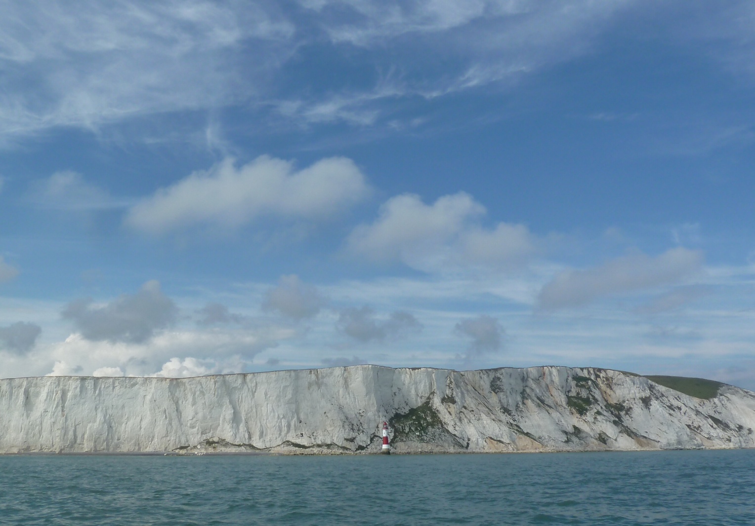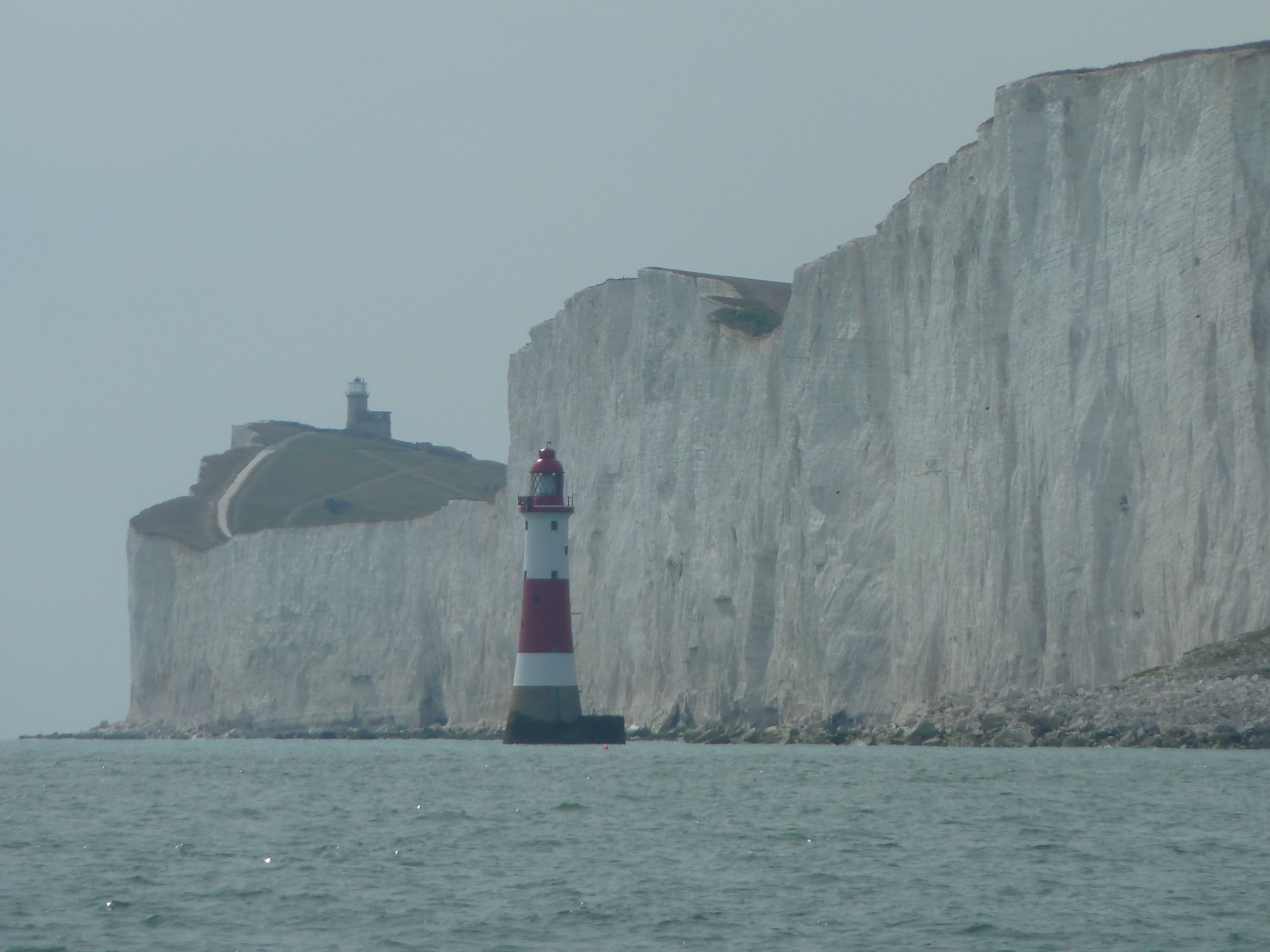 Beachy Haed. Unten ist der Neue. Noch während der Bauzeit haben die wackeren Briten festgestellt, dass eigentlich immer im Nebel verschwunden war. Also unten nochmal. Wir sind aus Eastbourne ausgelaufen nach Brighton. Das ist zwar etwas dicht bei mit 21 Meilen aber Cowes ist wieder zu weit. Das wollen wir morgen versuchen. Sea U Bert