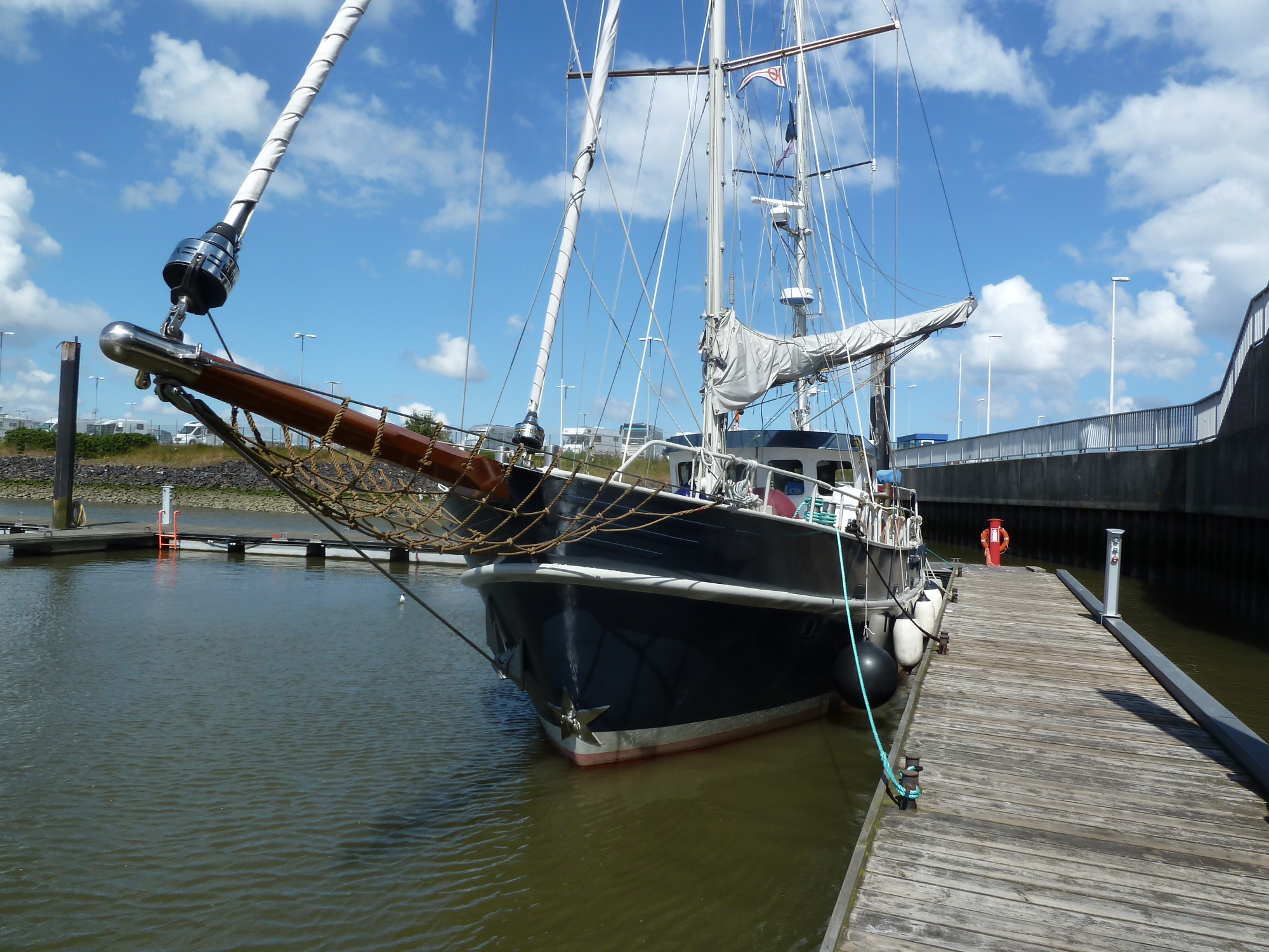 In See, Elbe. Pünktlich um 04.00 sind wir aus Cuxhaven ausgelaufen. Gestern noch Panikkauf, weil wir unseren Drucker nicht in Gang bekamen. Also schnell mit den Sauseflitzrädern zu Behning und einen Neuen gekauft. Die Herausforderung bestand darin einen zu finden der in unser Druckerfach passt. Die heutigen Drucker können fast alle auch kopieren, und das macht sie für uns zu groß. Die Lösung war ein kleiner schwarz-weiß Laserdrucker. Also werden unsere Reisen jetzt etwas weniger farbig werden. Die Maschinistin hat spät abends noch die Kühlwasserfilter gereinigt, wohl weil sie mit Osteschlick im Filter nicht nach Helgoland wollte. Das hat wohl mit Berufsehre zu tun oder so. Fair winds Bert