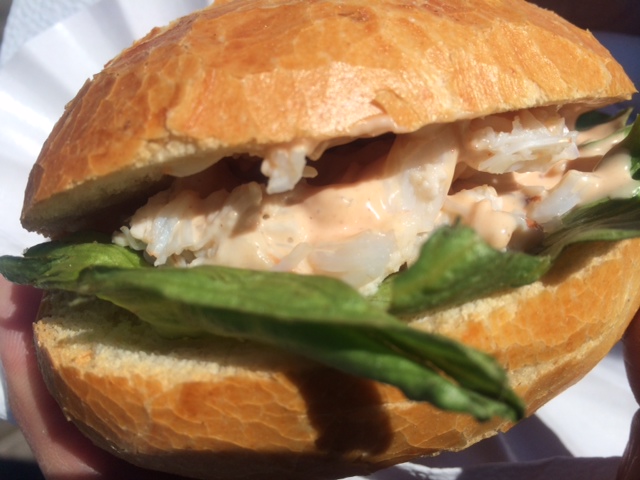 Der erste Weg führt zum Knieperbrötchen. Taschenkrebsfleisch.