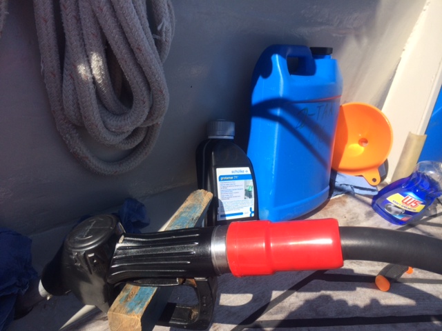 Die meisten heute eingebauten Dieselmotoren haben einen Kontruktionstand aus der Zeit als der Diesel noch Schwefel und mehr Fett enthielt. Deswegen geben tausende von Taxifahrern beim Tanken einen Schuss Zweitaktöl zu. Wir tun das auch, etwa 4 Liter auf 1000 Liter Diesel. Damit werden die Einspritzpumpen besser geschmiert und bei uns ist es auch ein Rostschutz für Heimkehrs Stahltanks. Grotamar 71 ist ein Mittel gegen Bioschlamm, d h Algen bzw Bakterien im Dieseltank. Diese Biester leben im Wasser, das sich leider auch in den Dieseltanks befindet. Leider gibt es einem Haufen Ärger wenn man eine solche Dieselpest im Schiff hat. Wir haben diese Erfahrung in den USA machen müssen. Aber auch bei uns Zuhause in Oberndorf ist es schon aufgetreten. Auch ist Diesel heute nur noch begrenzt lagerfähig. Deswegen muss man unbedingt dieses teure Zeug mit in den Tank tun . Fair winds mit sauberem Diesel Bert
