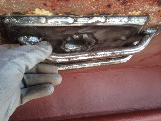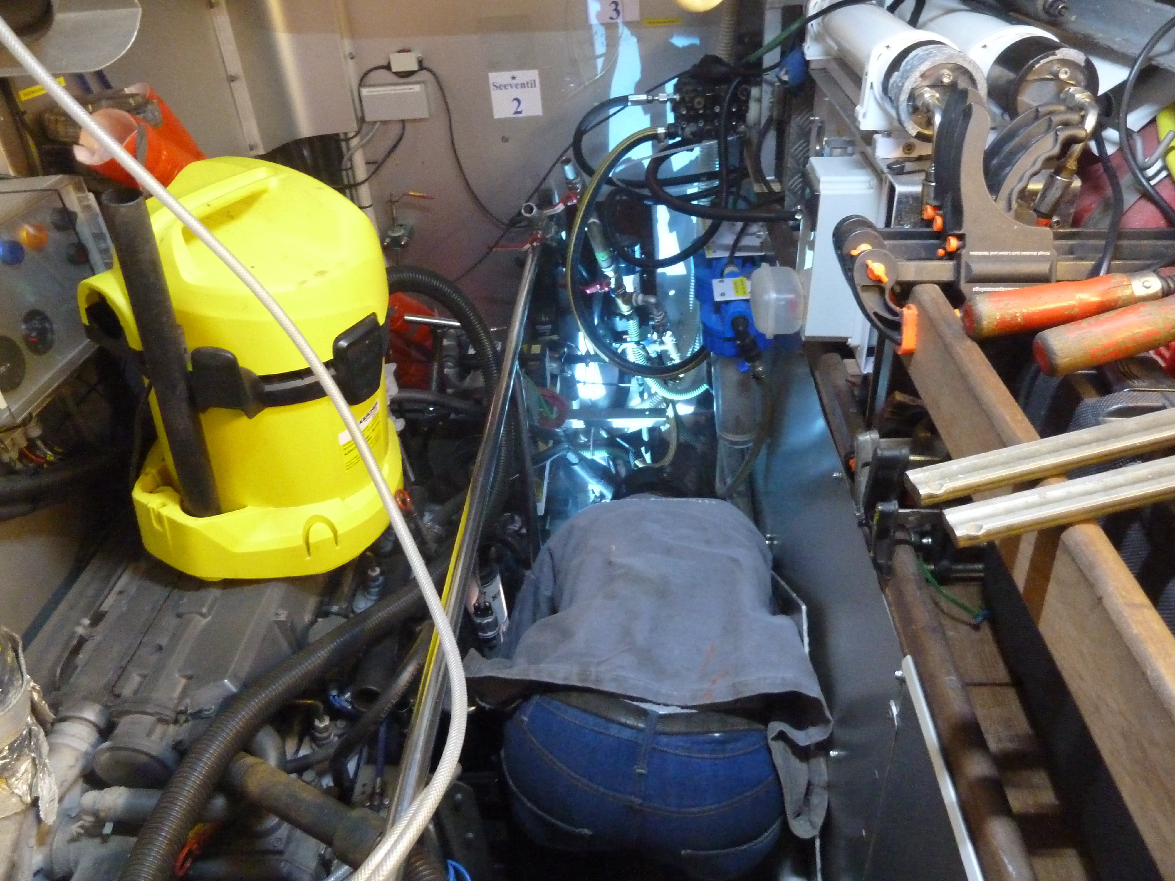 Glückstadt. Unser Olaf schweißt im engen Maschinenraum unsere neuen Seewassereintrittsrohre ein. Eine Sauarbeit, sehr warm, Qualm und eng. Aber es geht voran.