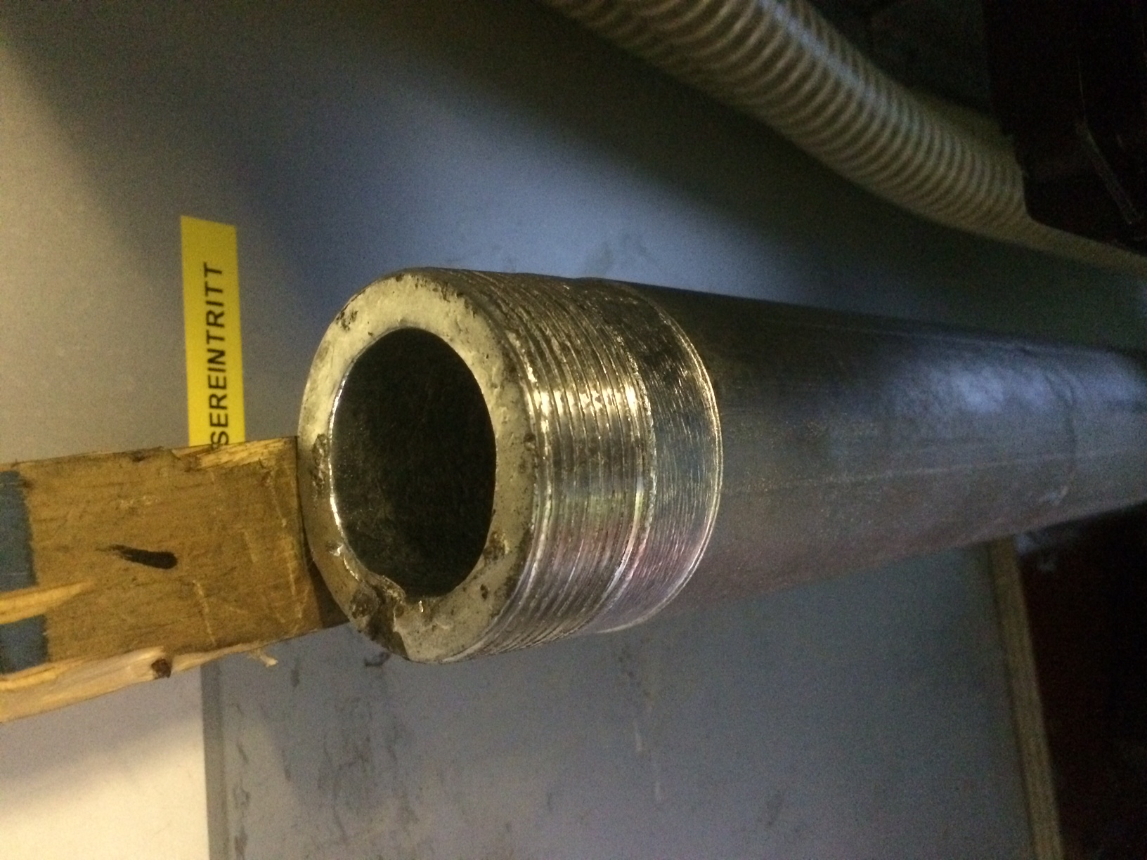 Glückstadt. Das Unterwasserschiff hat schon den ersten Anstrich, die Schanz ist geschliffen, der Wassergang auch. Wir haben die Seewassereintrittsrohre entfernt um sie zu erneuern. In einem Fall zeigte sich, das es nötig war. Die neuen Rohre werden eine Wandstärke von ca 10mm haben. Sea U Bert